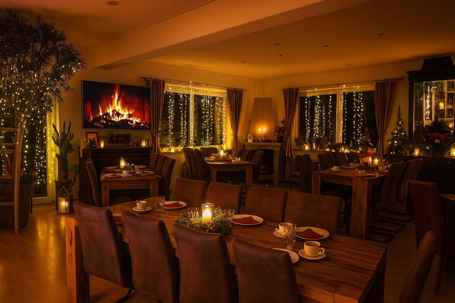 Wenn die Tage kürzer werden und funkelnde Lichter das Ufer erhellen, verwandelt sich das Strandhotel in eine gemütliche Winteroase. Genieße heiße Crêpes, duftenden Glühwein und ein winterliches Barbecue am Feuer. Fackeln, Tannen und liebevolle Dekoration sorgen für ein stimmungsvolles Ambiente direkt am Wasser.